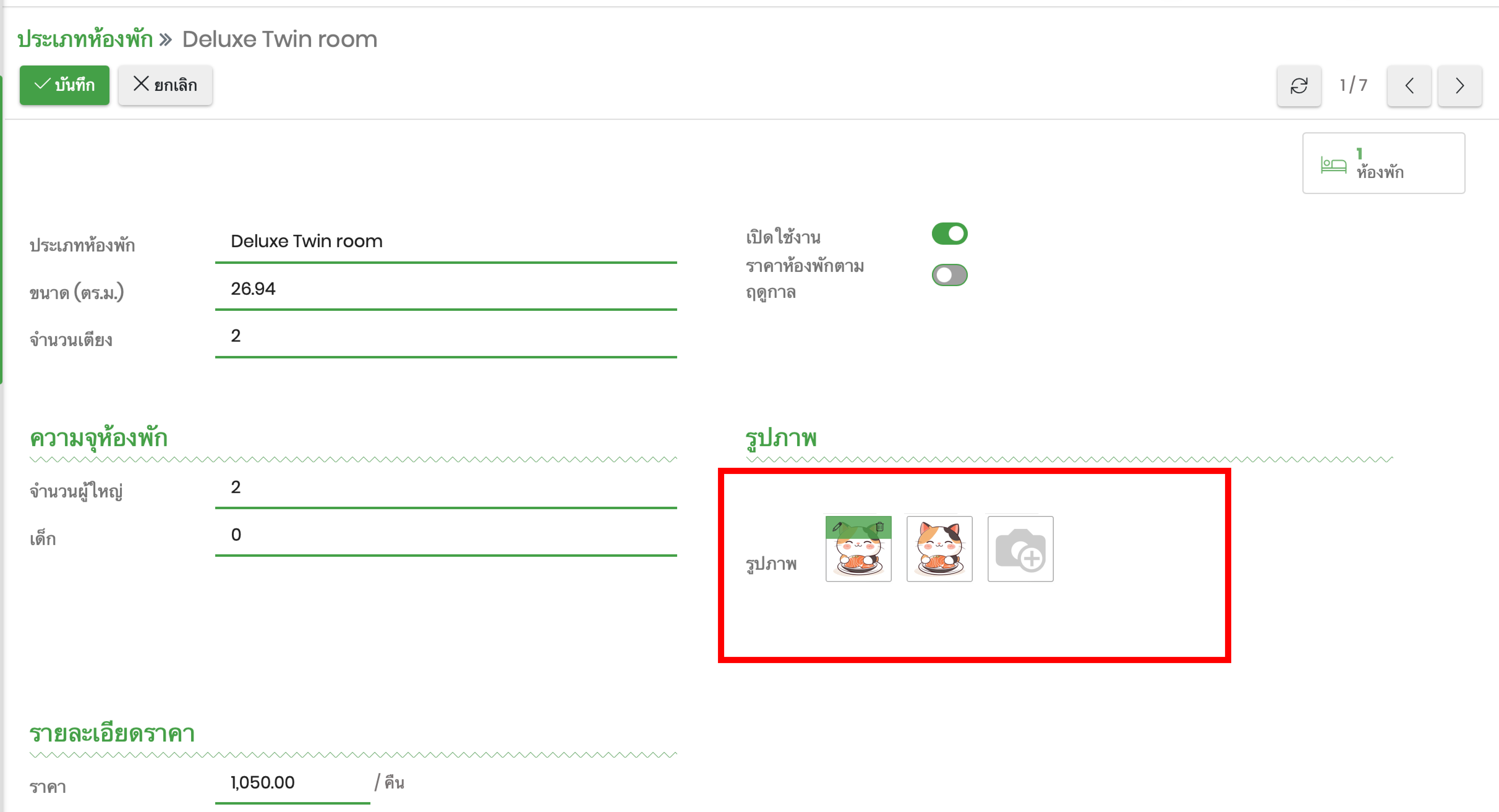 • ต้องมีปุ่ม "ลบ" สำหรับลบภาพประเภทห้องพัก