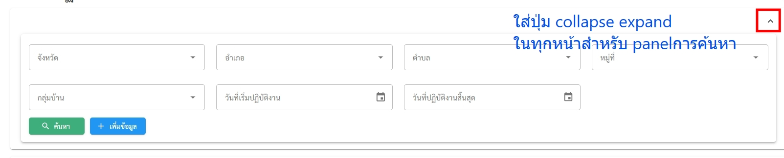 - ใส่ปุ่ม collapse expand ในทุกหน้าสำหรับ panel ค้นหา