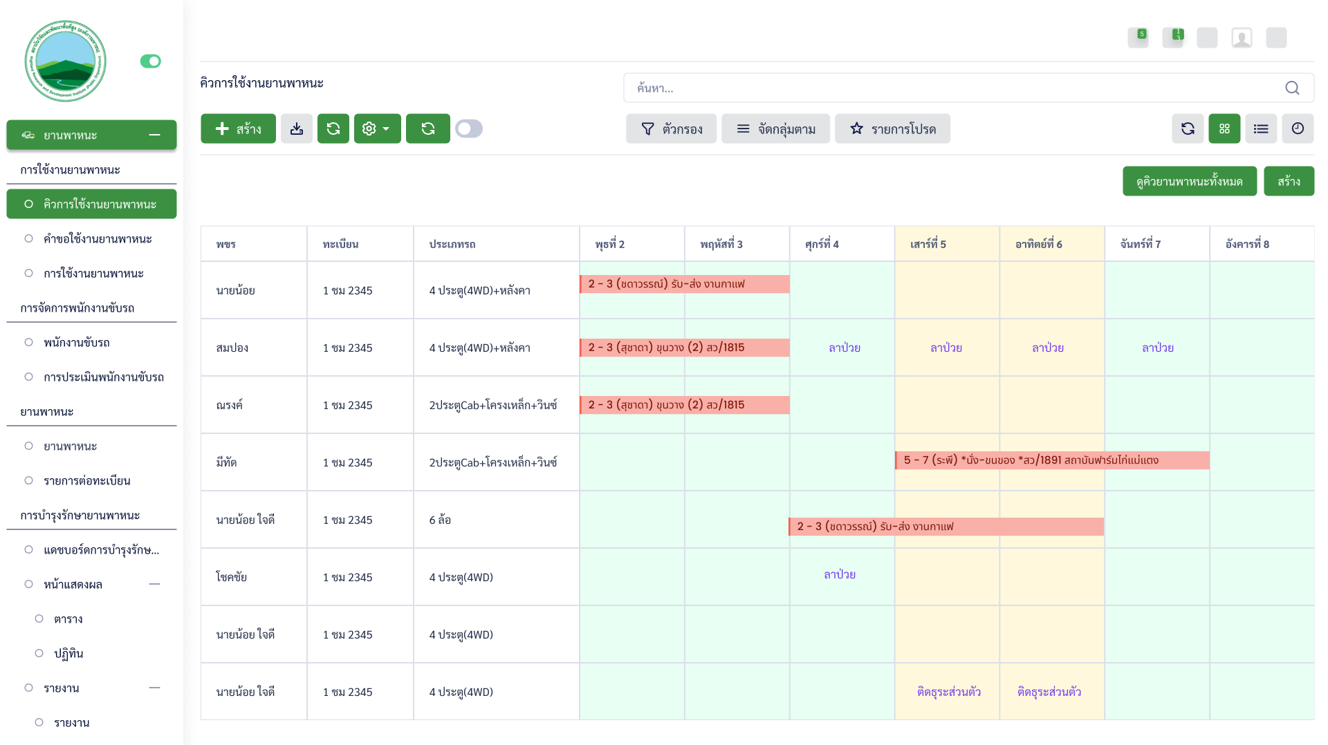 จัดทำหน้า Dashboard ของรถ แสดงสถานะยานพาหนะ ว่าง/ไม่ว่าง ตามช่วงเวลาที่ต้องการ *ปรับหน้า ui Dashboard Calenda