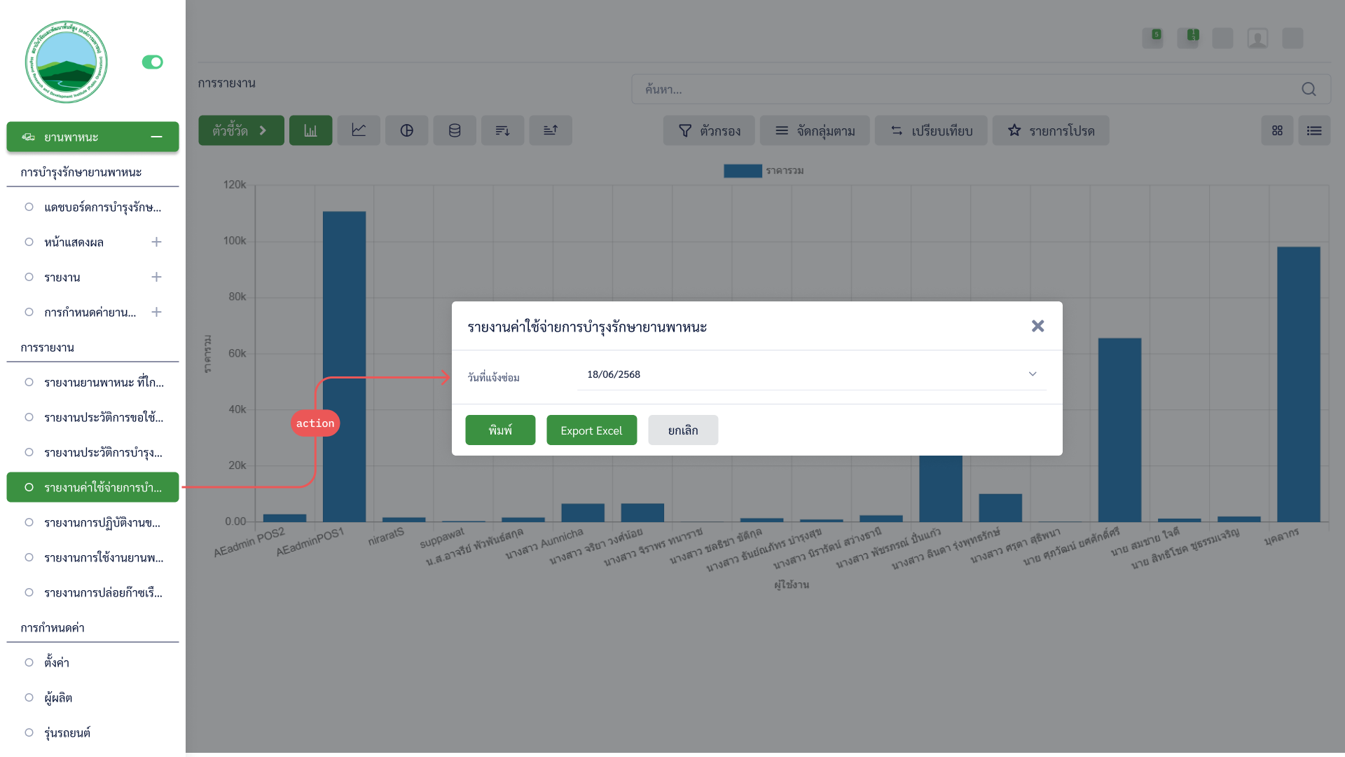 สามารถออกรายงานค่าใช้จ่ายการบำรุงรักษายานพาหนะ