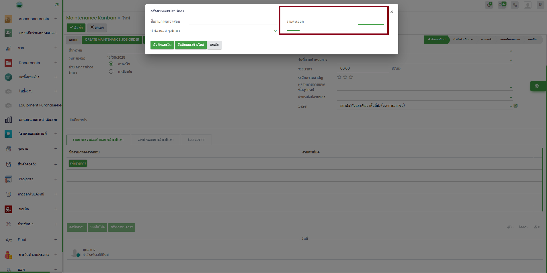 4.5.2 สามารถสร้างใบแจ้งซ่อมได้ โดยมีรายละเอียดการแจ้งซ่อม เช่น รหัสครุภัณฑ์ รายละเอียดปัญหาที่พบ ผู้แจ้งซ่อม วันที่แจ้งซ่อม เป็นต้น