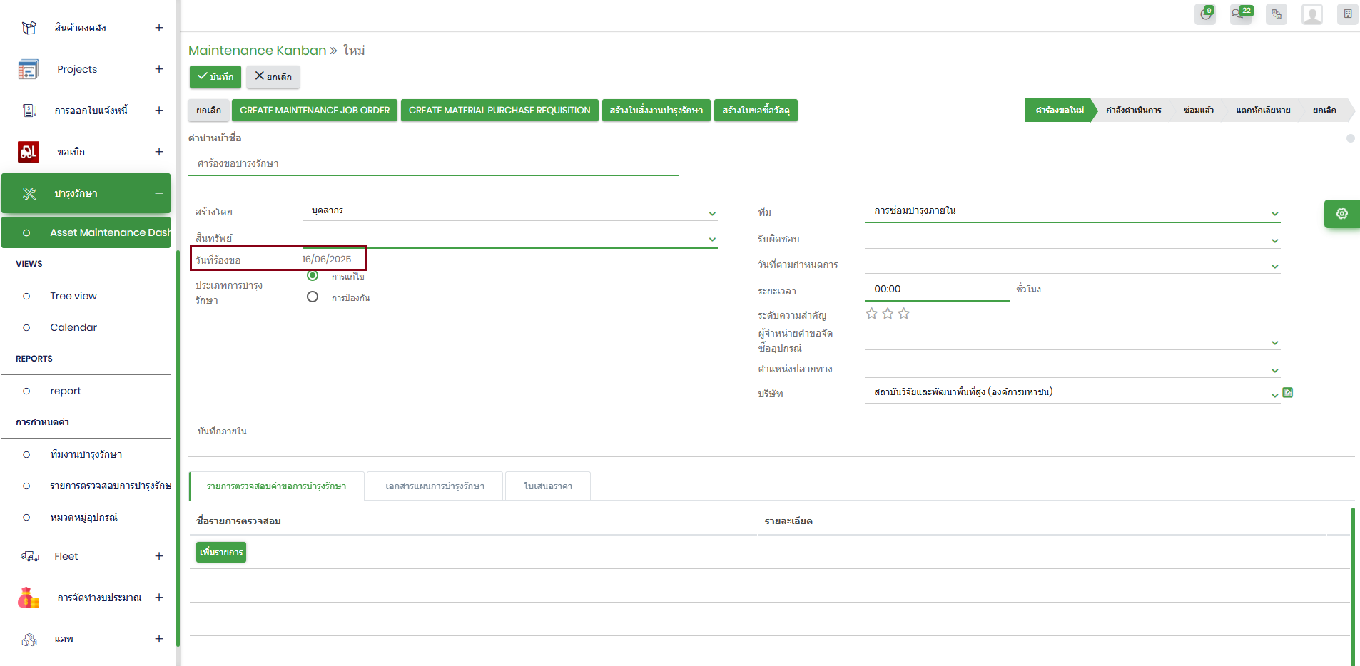 - ต้องการให้ วันทีร้องขอ สามารถแก้ไขได้