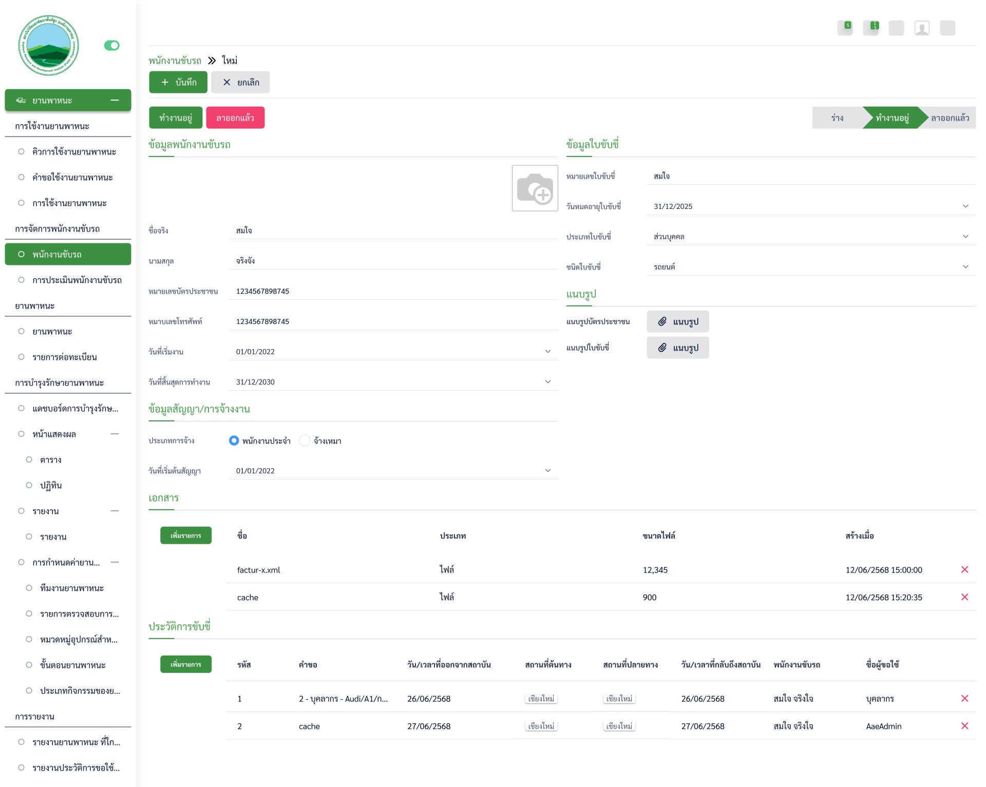4.New Request #2419: 4.3.7 สามารถบันทึกข้อมูลรายละเอียดของพนักงานขับรถยนต์รายคน เช่น ชื่อนามสกุล รูปถ่าย เลขบัตรประชาชน เลขใบขับขี่ ประวัติการขับรถยนต์ แนบไฟล์เอกสารที่เกี่ยวข้อง เป็นต้น