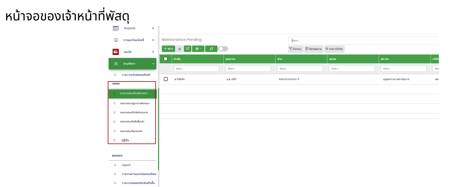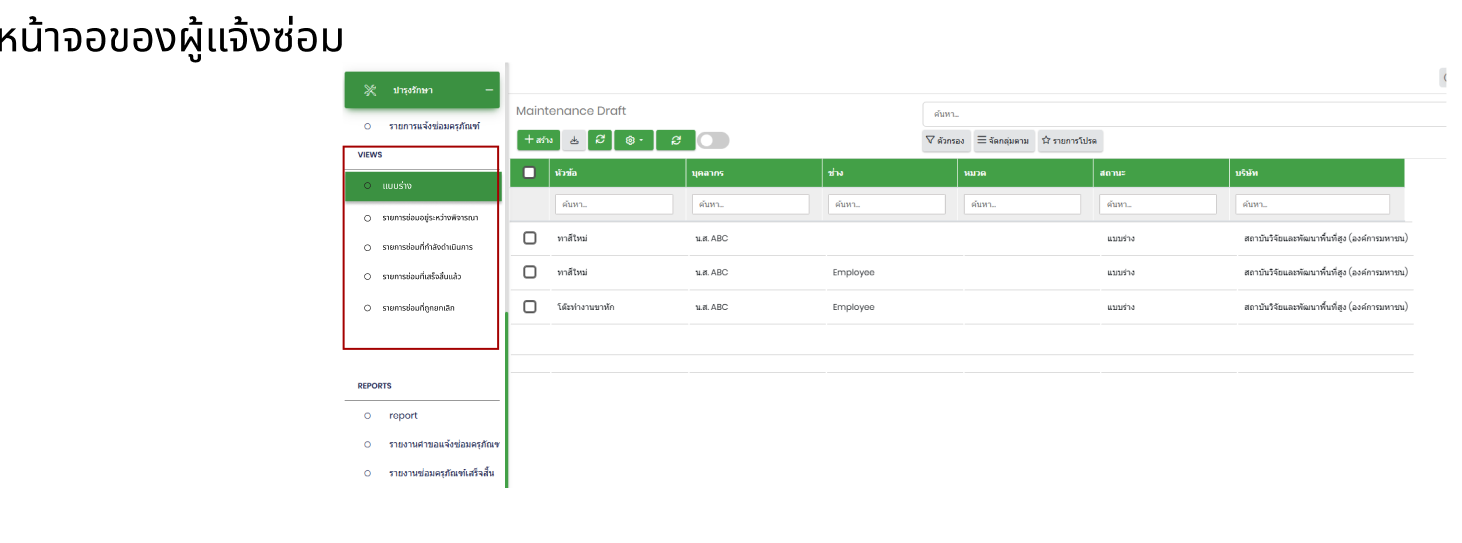 หน้าของผู้แจ้งซ่อม ประกอบด้วย