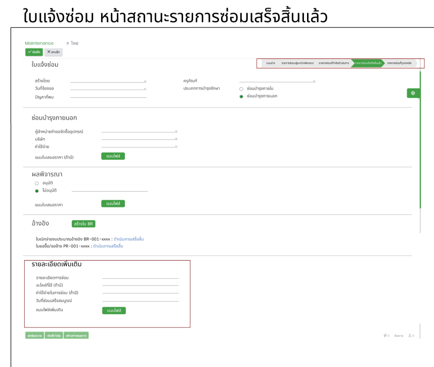 |วันที่ซ่อมเสร็จสมบูรณ์|Date picker| |