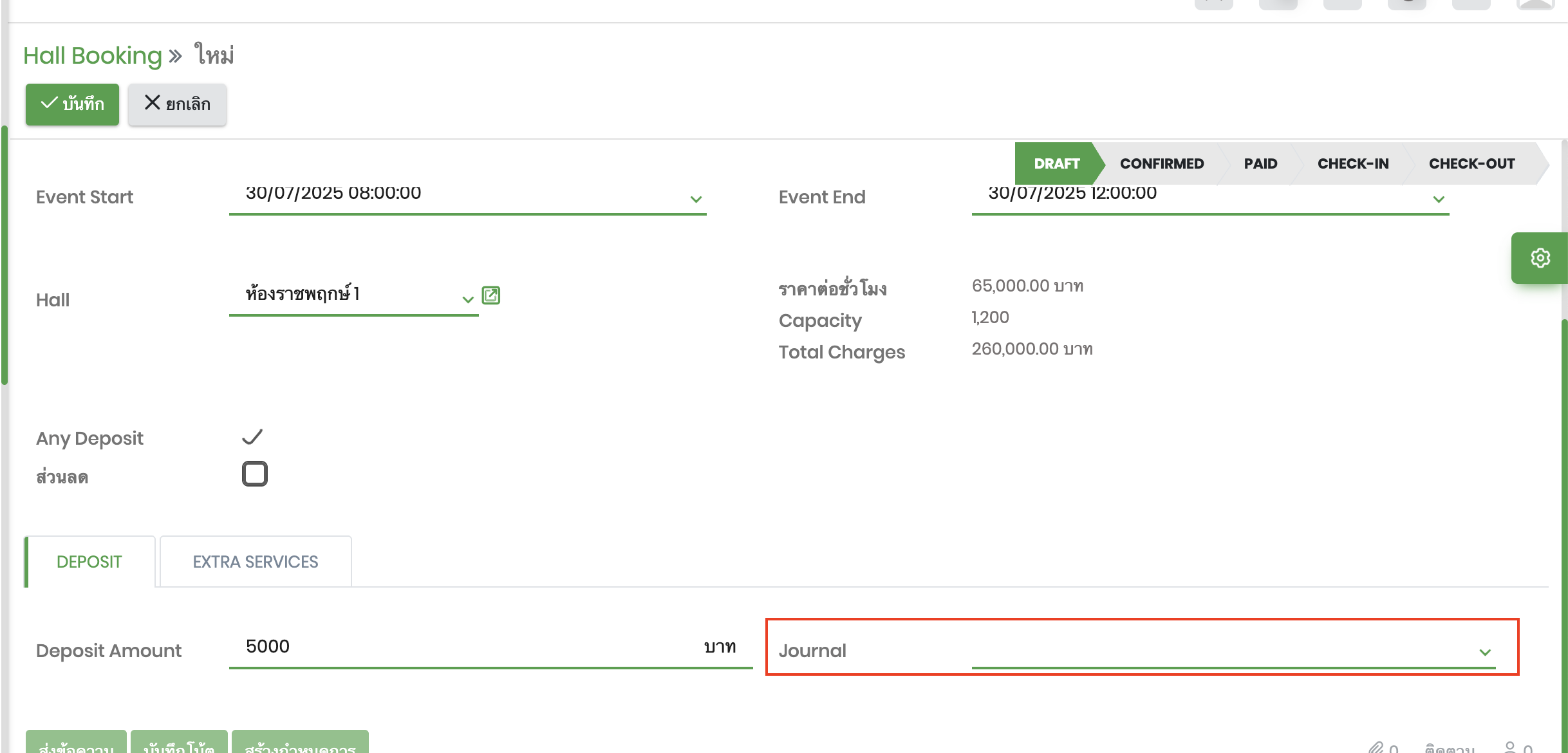[การจองสถานที่] การเลือกบัญชีกรณีมีการบันทึกเงินมัดจำ