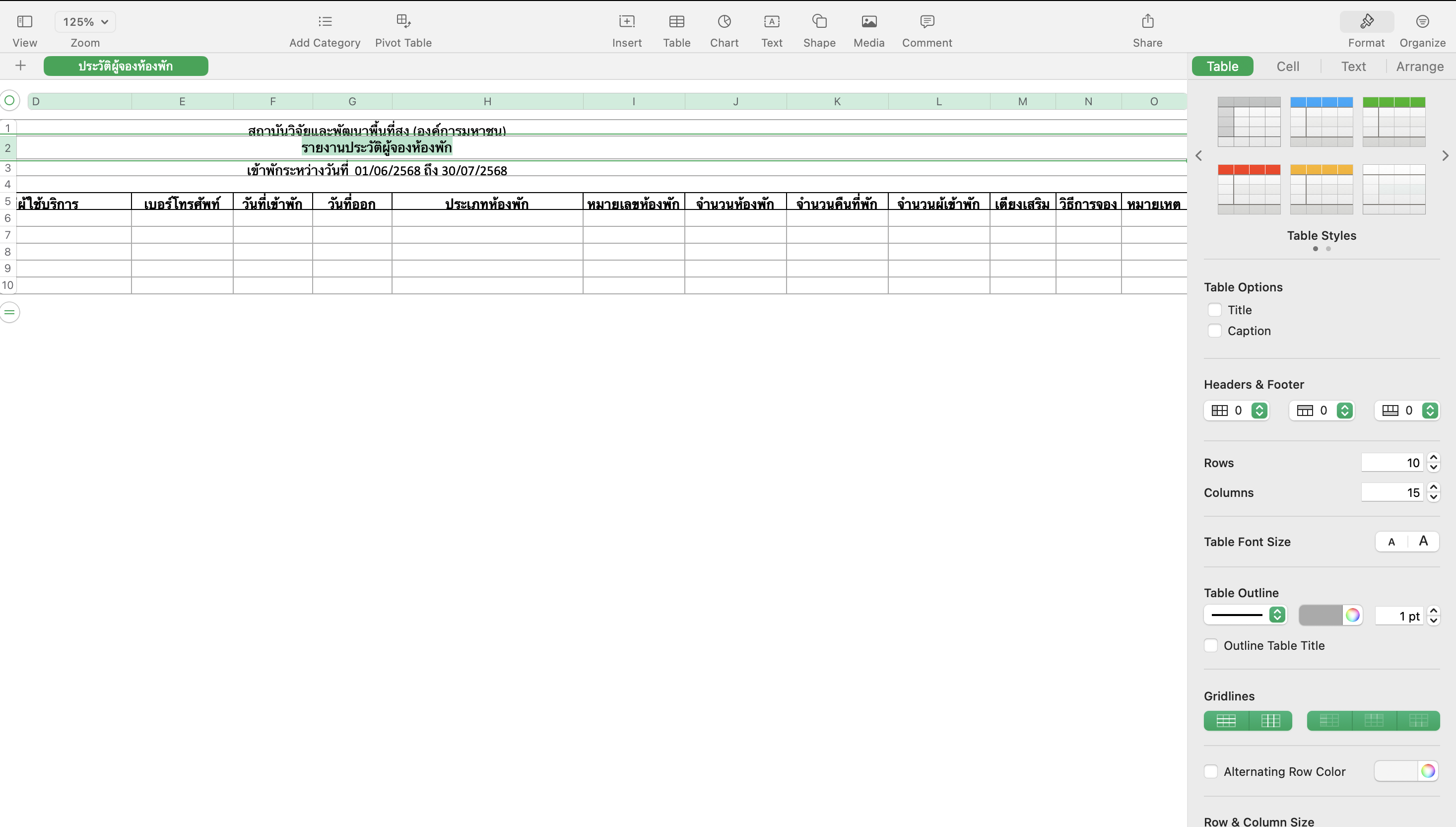 [หน้าจองห้องพัก] รายงานประวัติการจองห้องพัก ข้อมูลไม่แสดงในไฟล์ Excel
