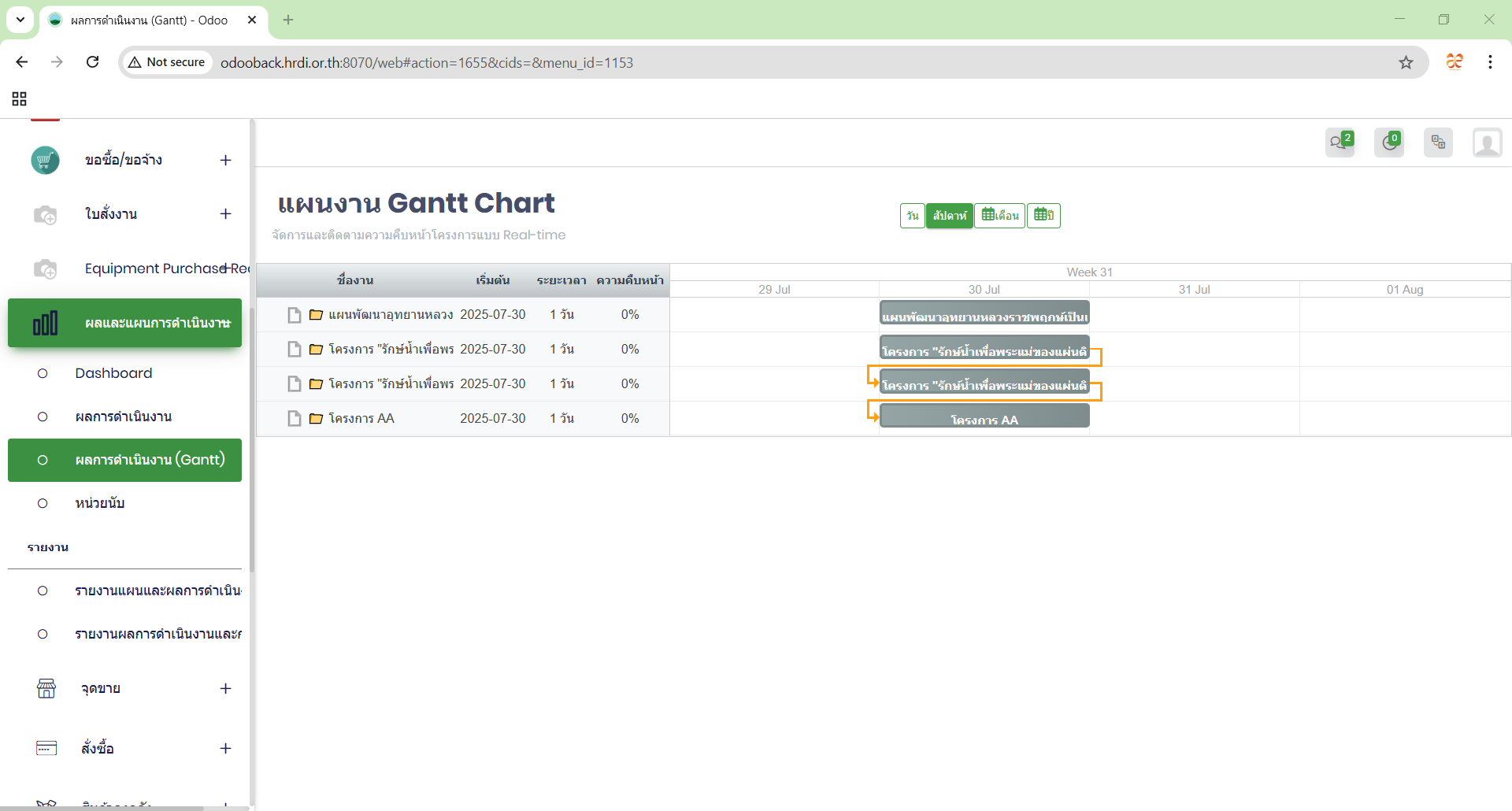 เพิ่มโครงการงานแล้วต้องขึ้นแสดงผลที่ แผนงาน Gantt Chart