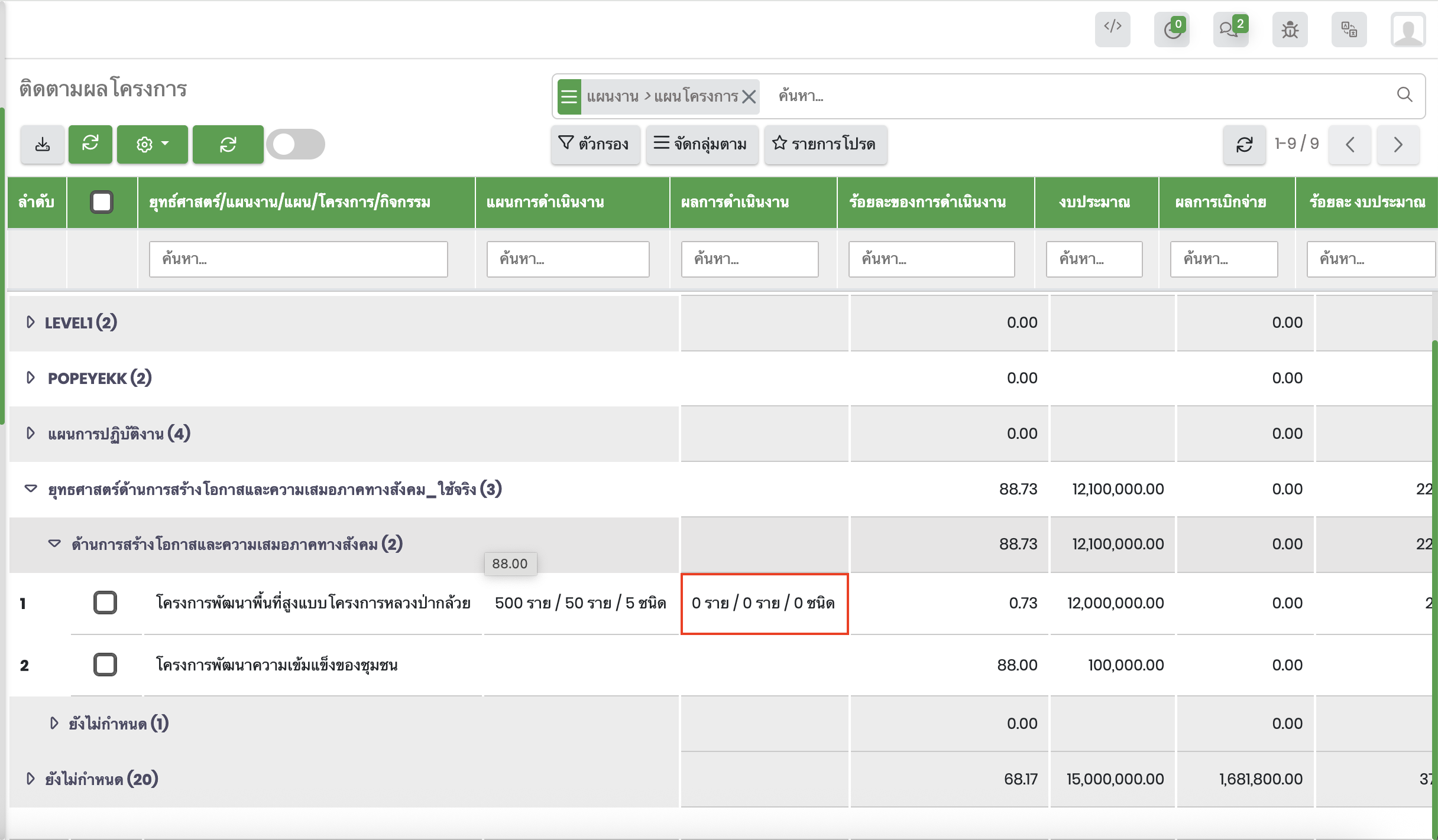 [หน้าผลการดำเนินงาน] บันทึกผลการดำเนินการแล้ว แต่ข้อมูลไม่แสดงที่คอลัมน์ผล