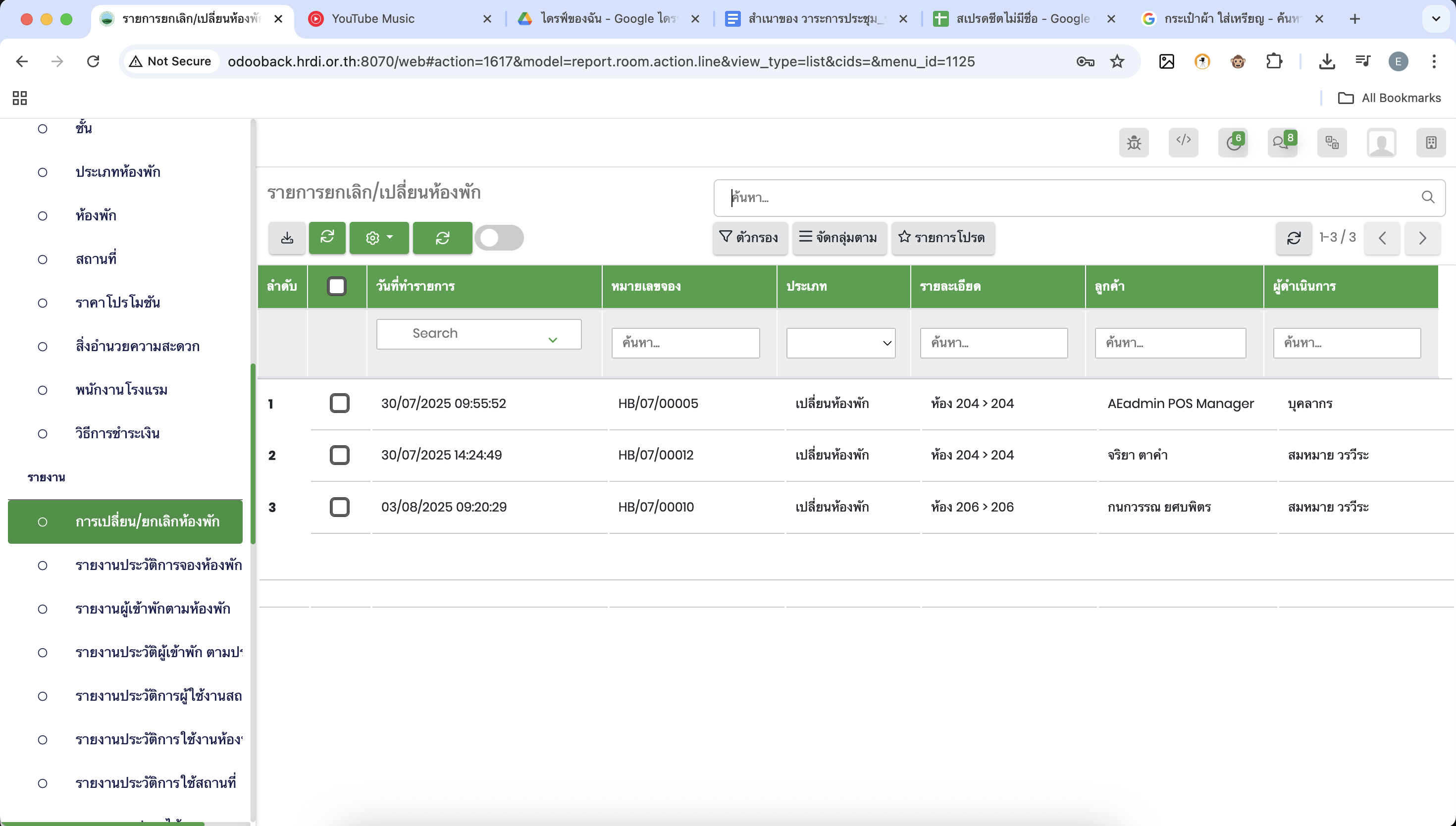 [หน้าเปลี่ยน/ยกเลิกสถานที่] ต้องมีรายงานแสดงข้อมูลการเปลี่ยนและยกเลิกการจองและยกเลิกสถานที่