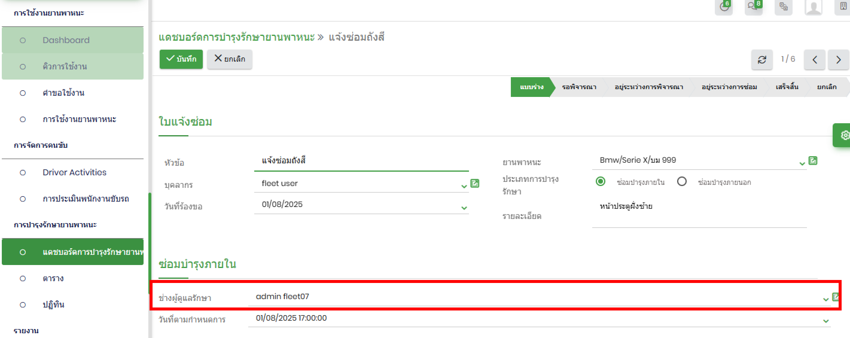 ปรับปรุงหน้าแจ้งซ่อมบำรุงรักษายานพาหนะ > ข้อมูลช่างผู้ดูแลรักษา >>ปรับเป็นช่องกรอกข้อมูล
