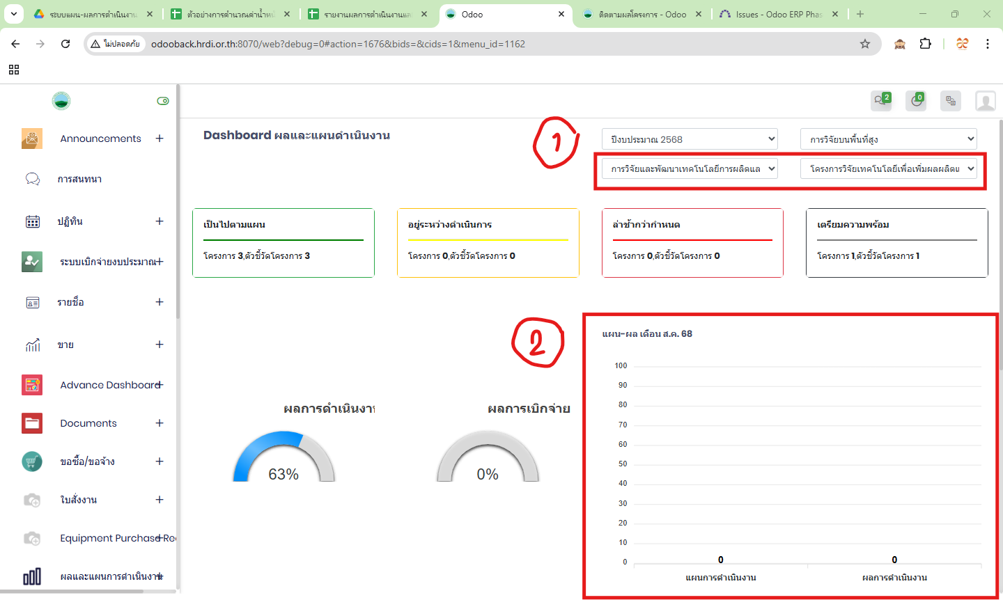 - แผนและผลการเบิกจ่ายยังแสดงผลไม่ถูกต้อง >> โครงการที่เลือกดูยังไม่มีการเบิกจ่ายงบประมาณ ค่าต้องเป็น 0