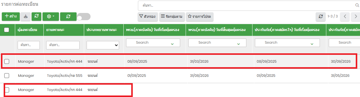 หน้ารายการต่อทะเบียน > ยานพาหนะมันขึ้นซ้ำกัน