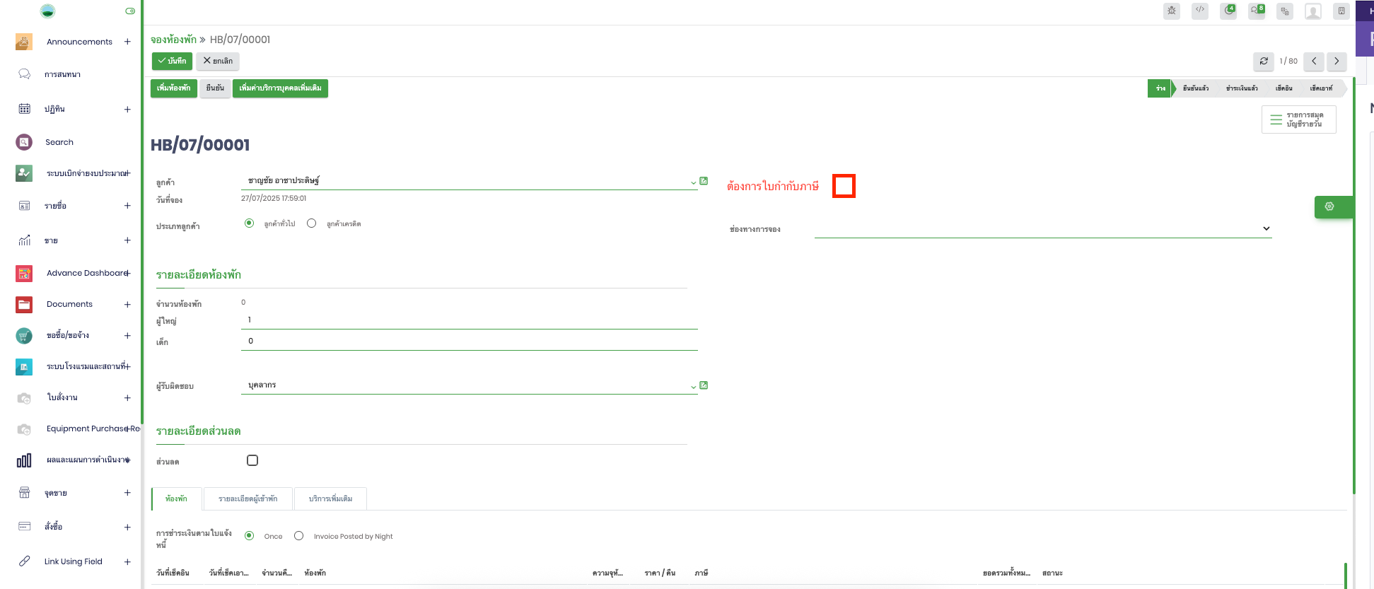 closedหน้าจองห้องพัก >> เพิ่ม Checkbox ต้องการใบกำกับภาษี เพื่อให้เจ้าหน้าที่ทราบว่าลูกค้าต้องการใบกำกับภาษี