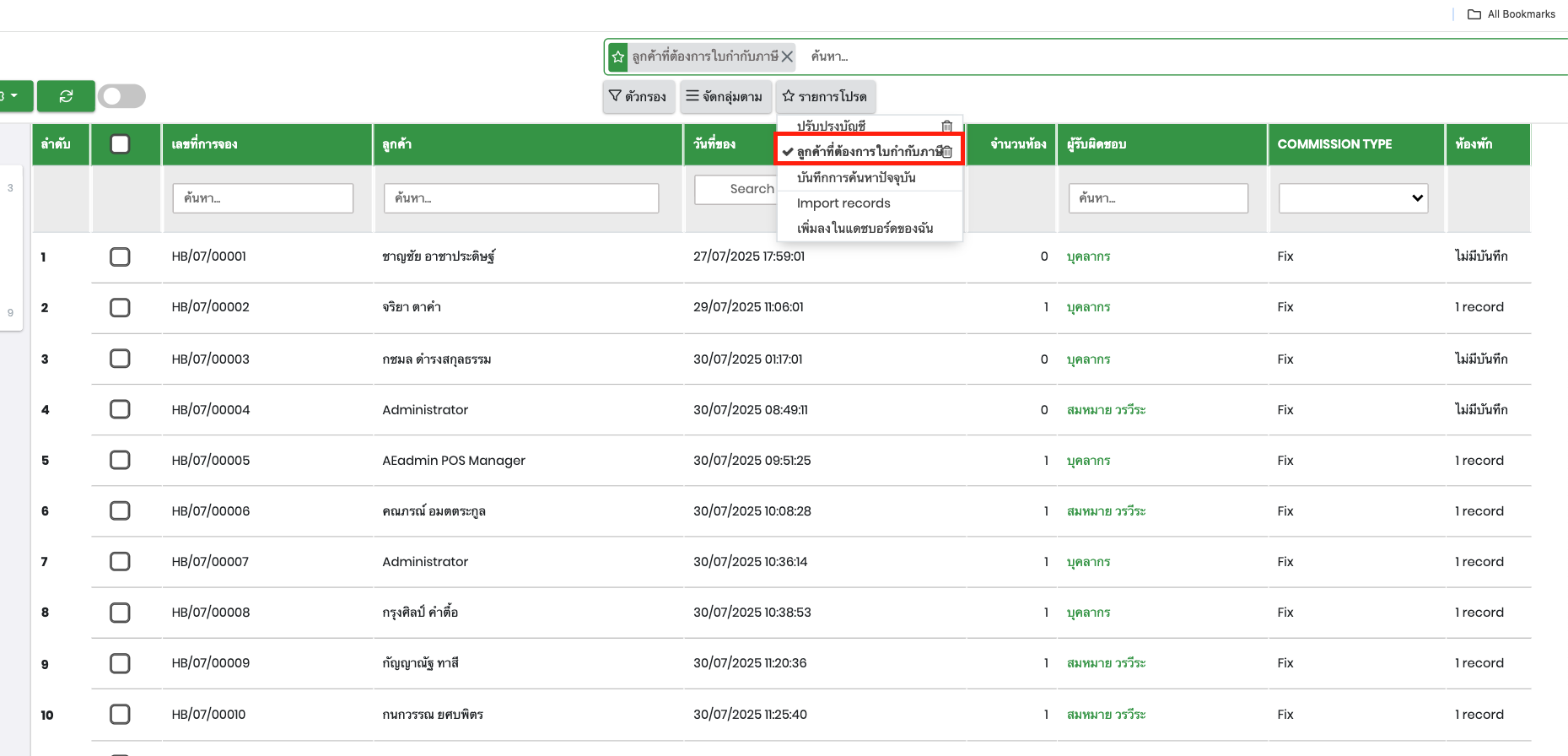 เพิ่ม รายการโปรด ให้แสดงเฉพาะข้อมูลการจอง ที่ลูกค้าต้องการใบกำกับภาษี