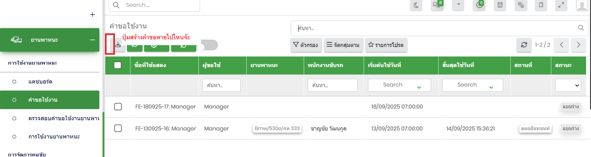 [หน้าคำขอใช้งาน] ปุ่ม "สร้าง" คำขอใช้งานหายไปไหน