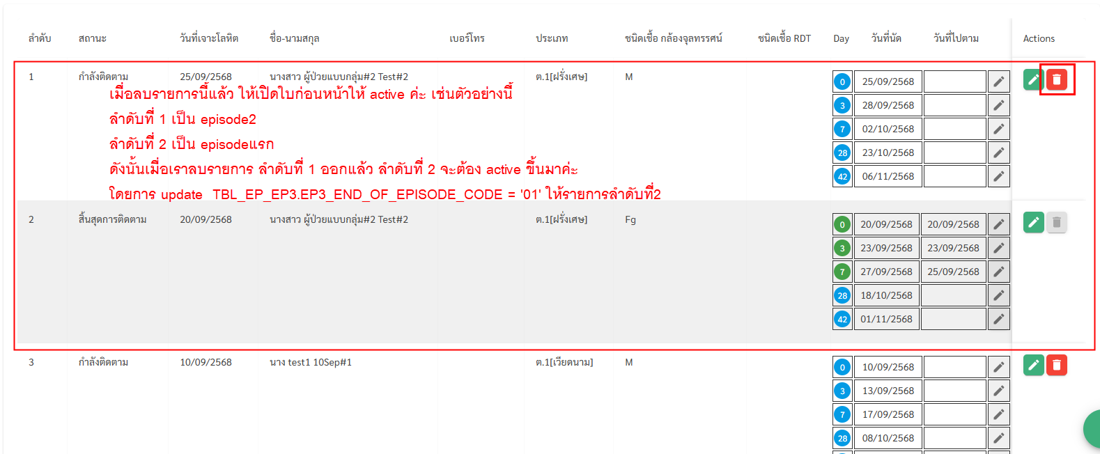 [รว/ติดตามการรักษา] หน้ารายการ >>การ ลบ กรณีมีมากกว่า 1 episode เมื่อลบรายการล่าสุด เคสก่อนหน้าจะต้อง active ขึ้นมาแทน