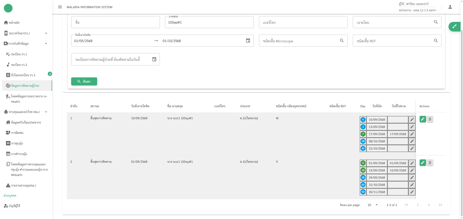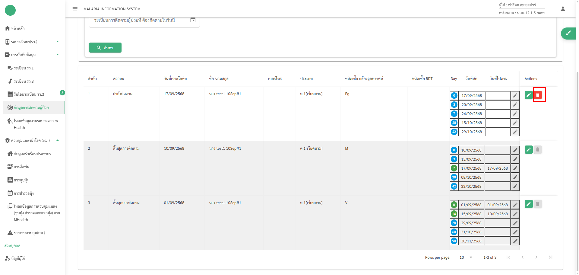 เมื่อบันทึก รว.3 ก็จะได้ว่าผู้ป่วยคนนี้มี รว.3 2 รายการ แสดงที่หน้า follow-up