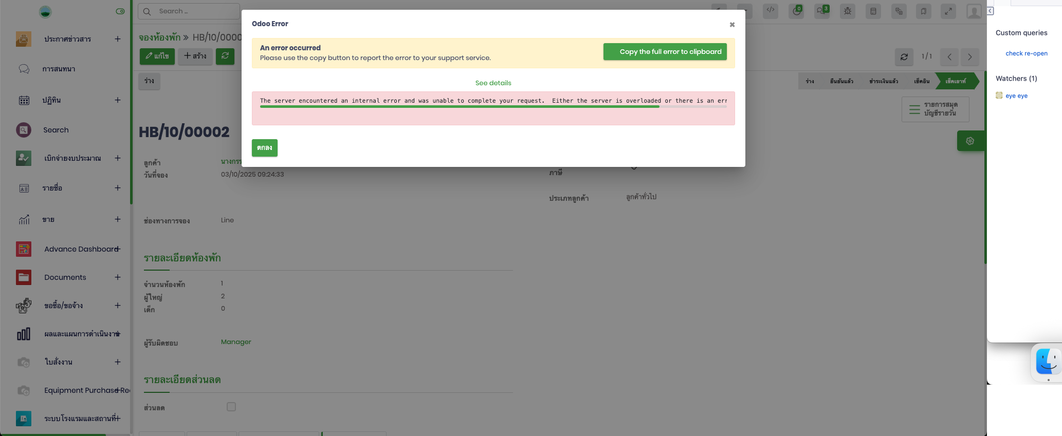 closed[การจองห้องพัก] เมื่อกดปุ่ม "พิมพ์" ระบบแสดง Error เอกสารที่เกี่ยวข้องกับการจอง