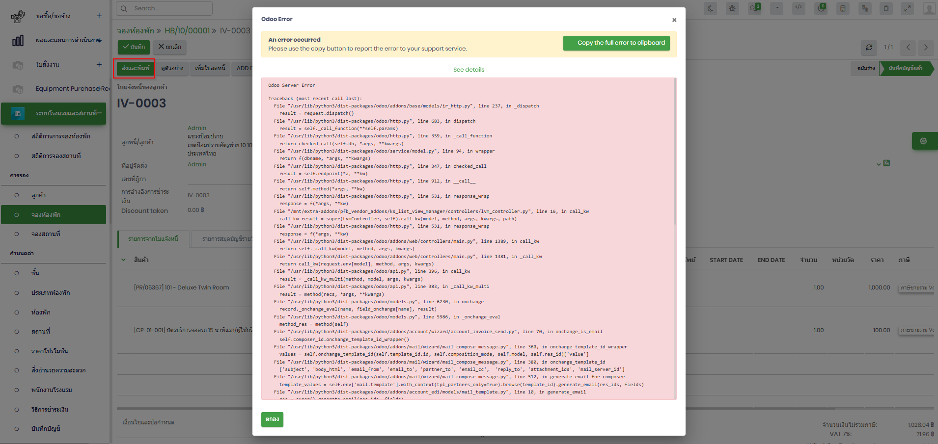 closed[การจองห้องพัก] Invoice เมื่อกดปุ่ม "ส่งและพิมพ์" ระบบแสดง Error