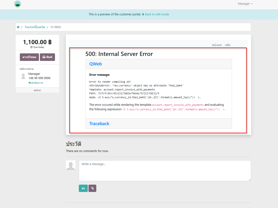 closed[การจองห้องพัก] Invoice เมื่อกดปุ่ม "ดูตัวอย่าง" ระบบแสดง Error