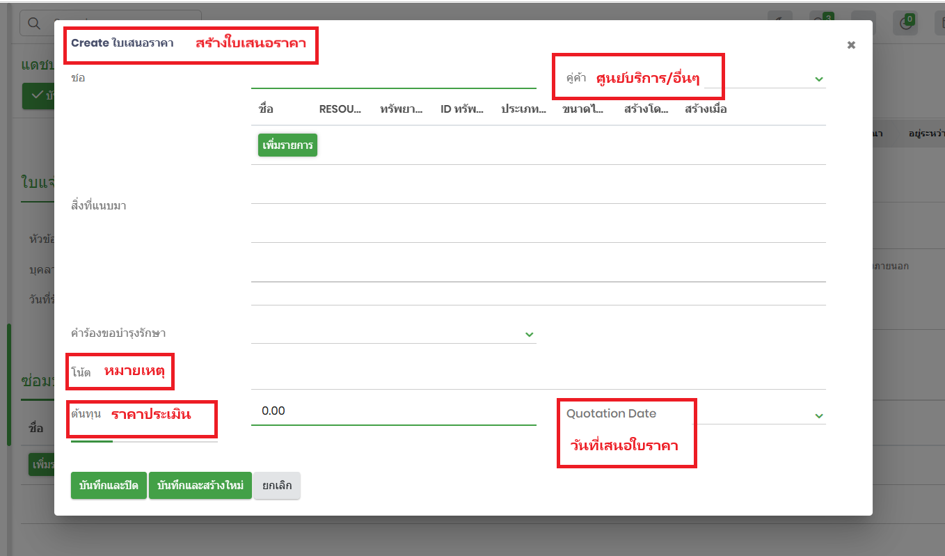 - เปลี่ยนคำว่า "Create ใบเสนอราคา" เป็น "สร้างใบเสนอราคา"