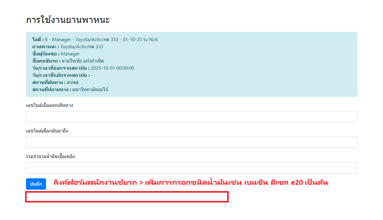 กดปุ่มลิงค์ฟอร์มพนักงานขับรถ > เพิ่มการกรอกชนิดน้ำมันเช่น เบนซิน ดีเซล e20 เป็นต้น