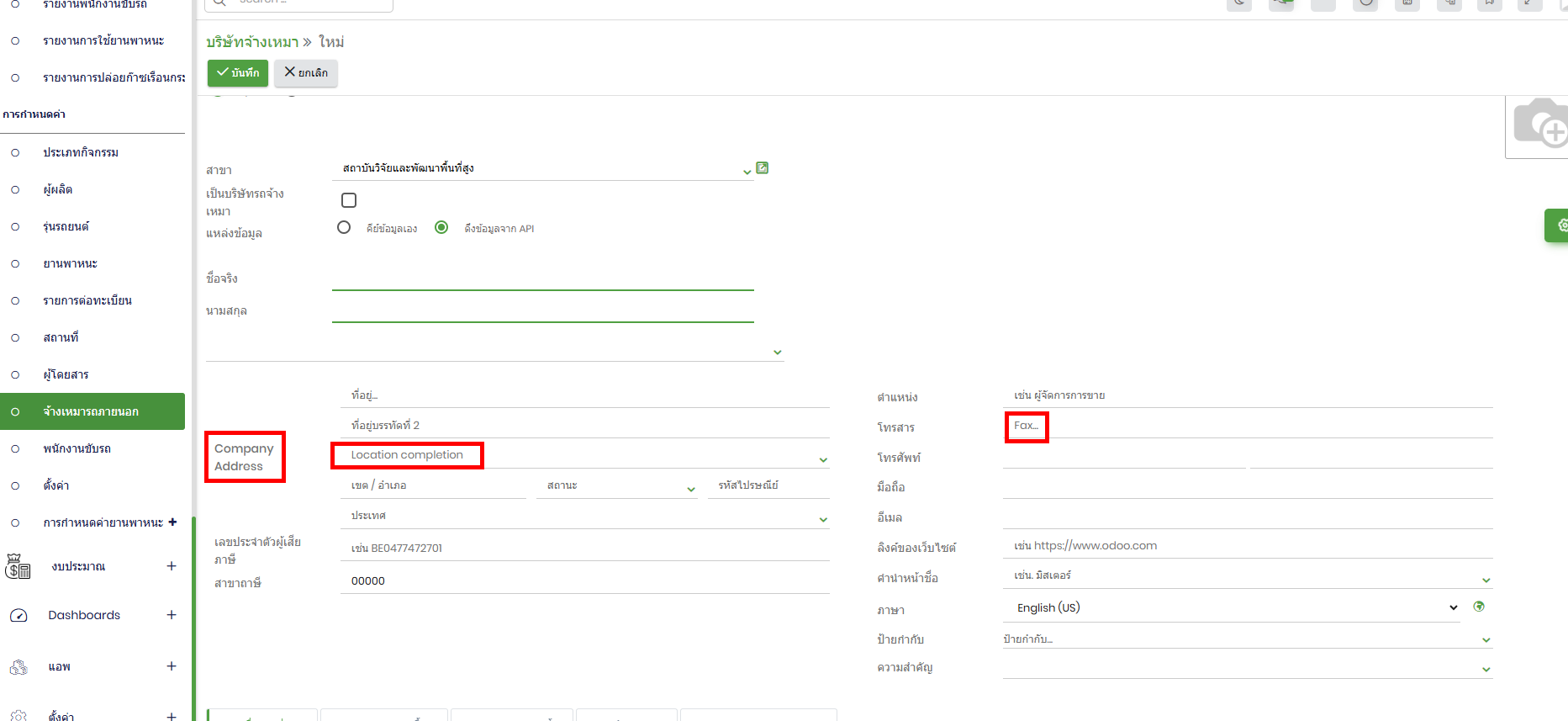 closed[ยานพาหนะ] เมนู จ้างเหมารถภายนอก > ปรับภาษา