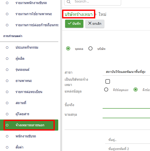 closed[ยานพาหนะ] เมนู จ้างเหมารถภายนอก > ปรับชื่อเมนูให้เหมือนกัน