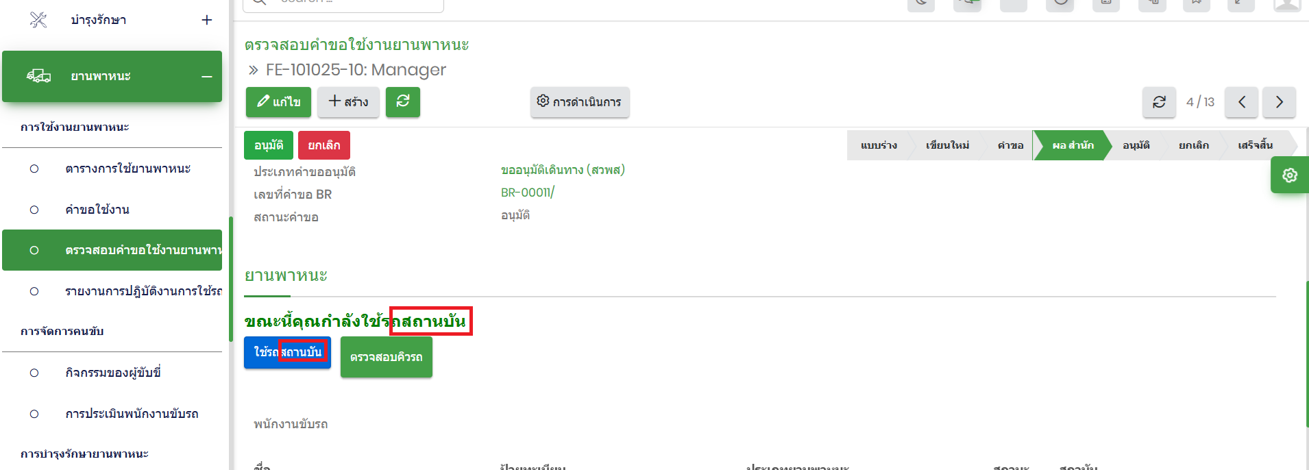 [การใช้งานยานพาหนะ]เมนูตรวจสอบคำขอใช้งานยานพาหนะ > แก้ไขคำผิด