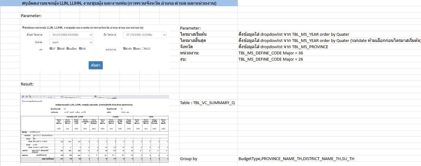 [รายงาน] คม. > สรุปผลงานแจกมุ้ง LLIN, LLIHN, งานชุบมุ้ง และงานพ่น (ภาพรวมจังหวัด อำเภอ ตำบล และหน่วยงาน)