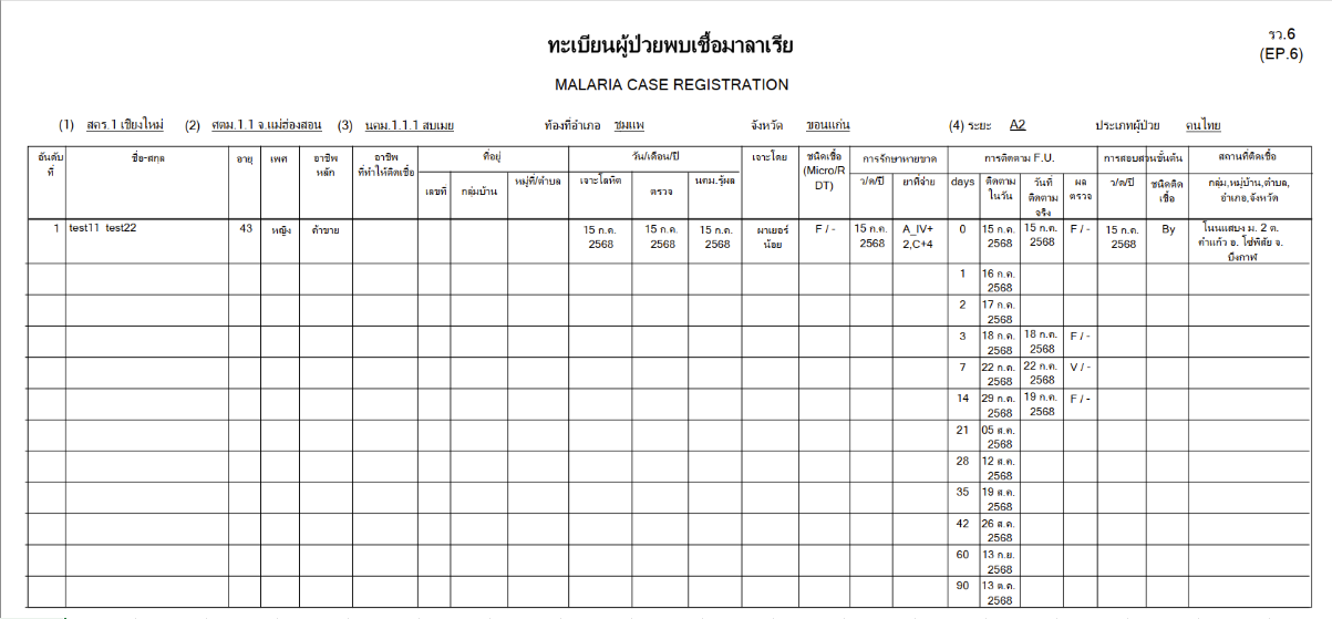 [รายงาน] รว. > รายงาน รว.6 ทะเบียนผู้ป่วยพบเชื้อมาลาเรีย