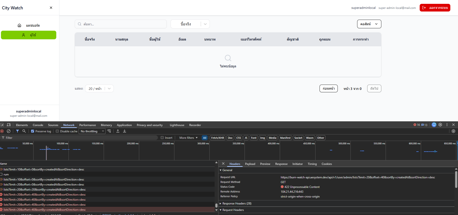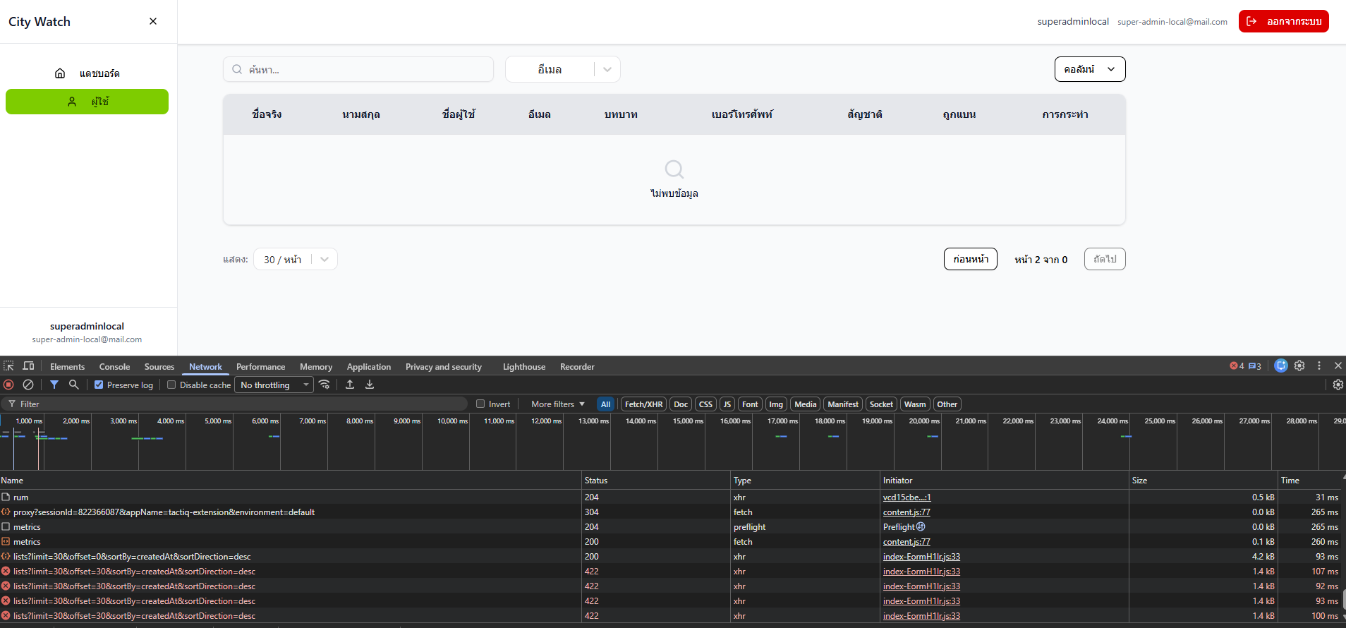 [Web] ผู้ใช้ > การแสดง List รายการผู้ใช้
