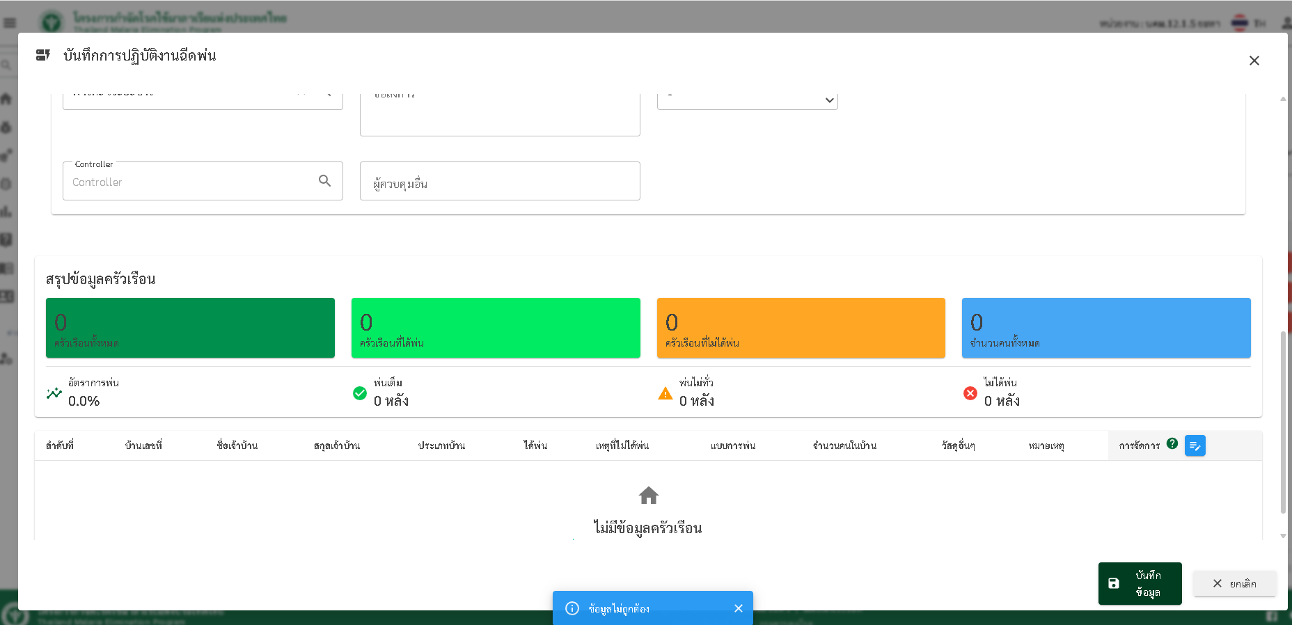 - เมื่อทำการเพิ่มข้อมูล Tab ข้อมูลพื้นที่ แล้วกดบันทึก ระบบสามารถบันทึกได้ (ซึ่งต้องกรอกข้อมูลให้ครบทั้งสอง Tab จึงจะสามารถบันทึกได้)