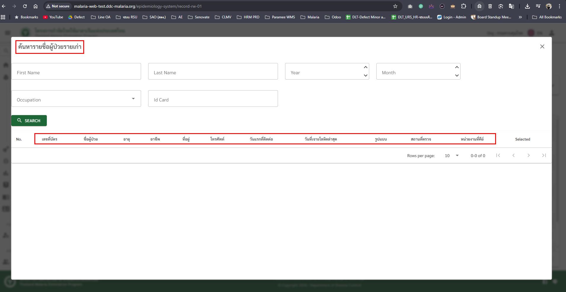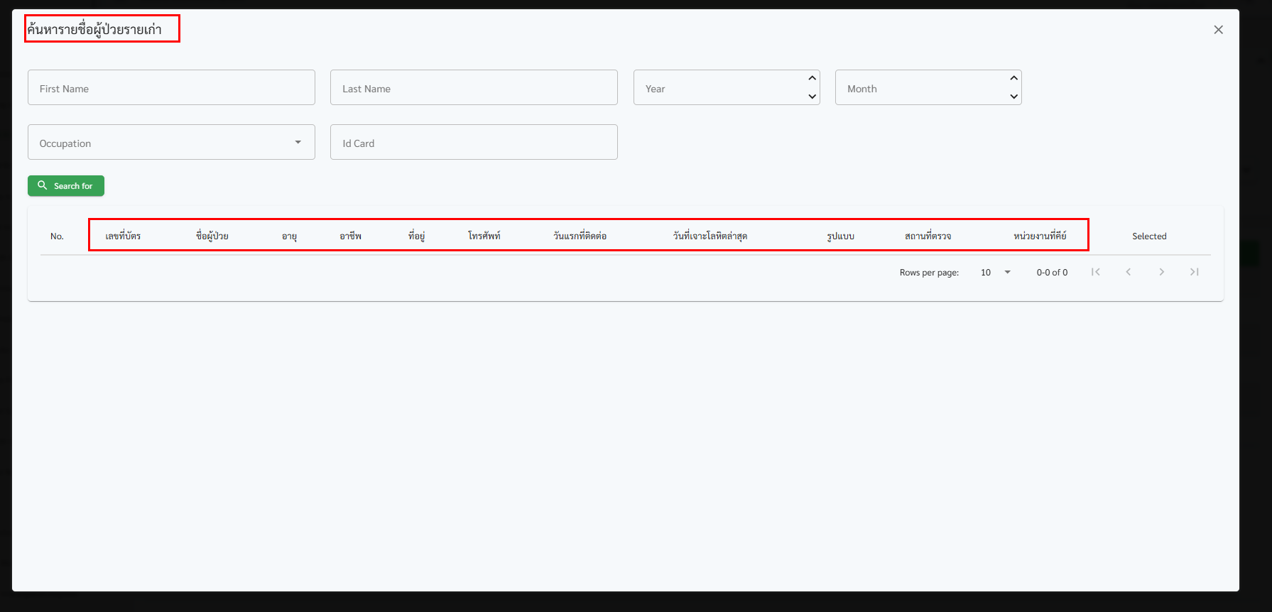 หน้า ค้นหารายชื่อผู้ป่วยรายเก่า
