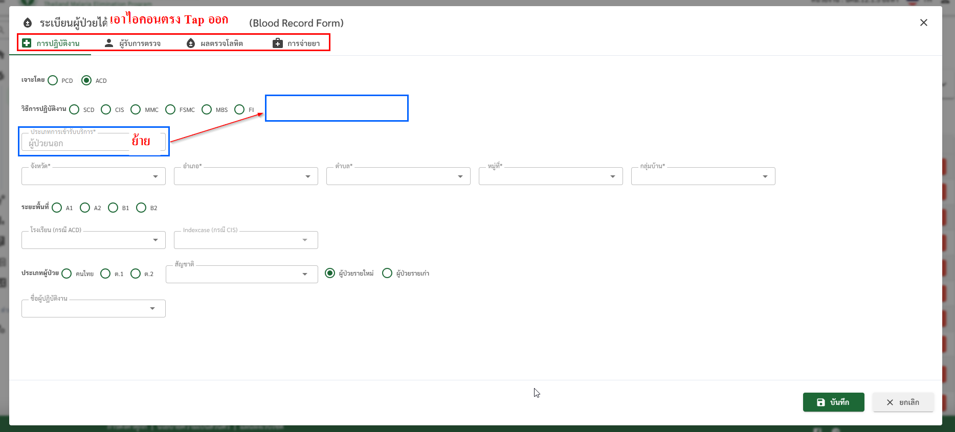- ACD ย้าย “ประเภทการเข้ารับบริการ” ให้มาอยู่บรรทัดเดียวกับ “วิธีการปฏิบัติงาน”