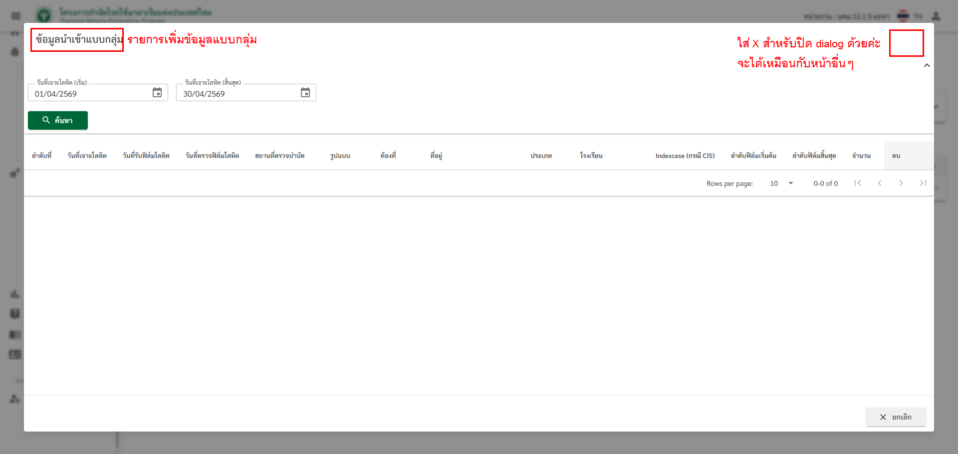 [รว/ระเบียน รว.1] หน้ารายการ >> Dialog ข้อมูลการเพิ่มแบบกลุ่ม