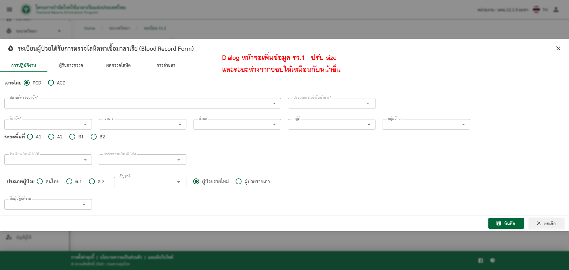 [รว/ระเบียน รว.1] เพิ่มข้อมูลรว.1 > ปรับ Dialog ให้เหมือนกับหน้าอื่นๆ