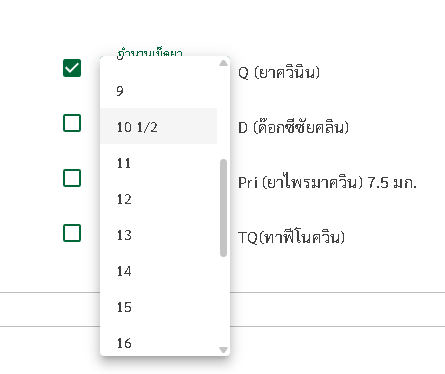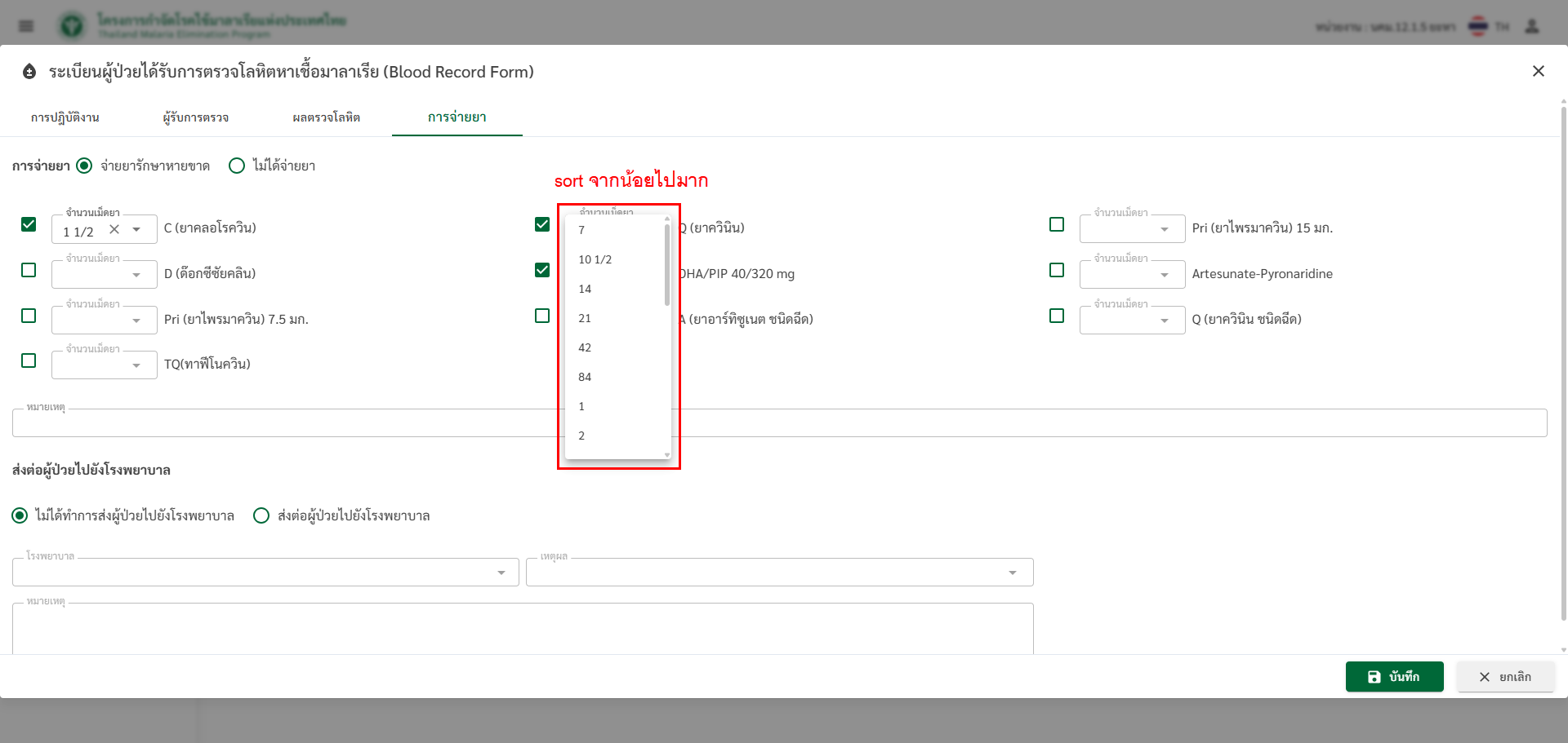 [รว] การจ่ายยา ในหน้า รว.1 และ Follow up ให้ sort ตัวเลขใน dropdown จากน้อยไปมาก