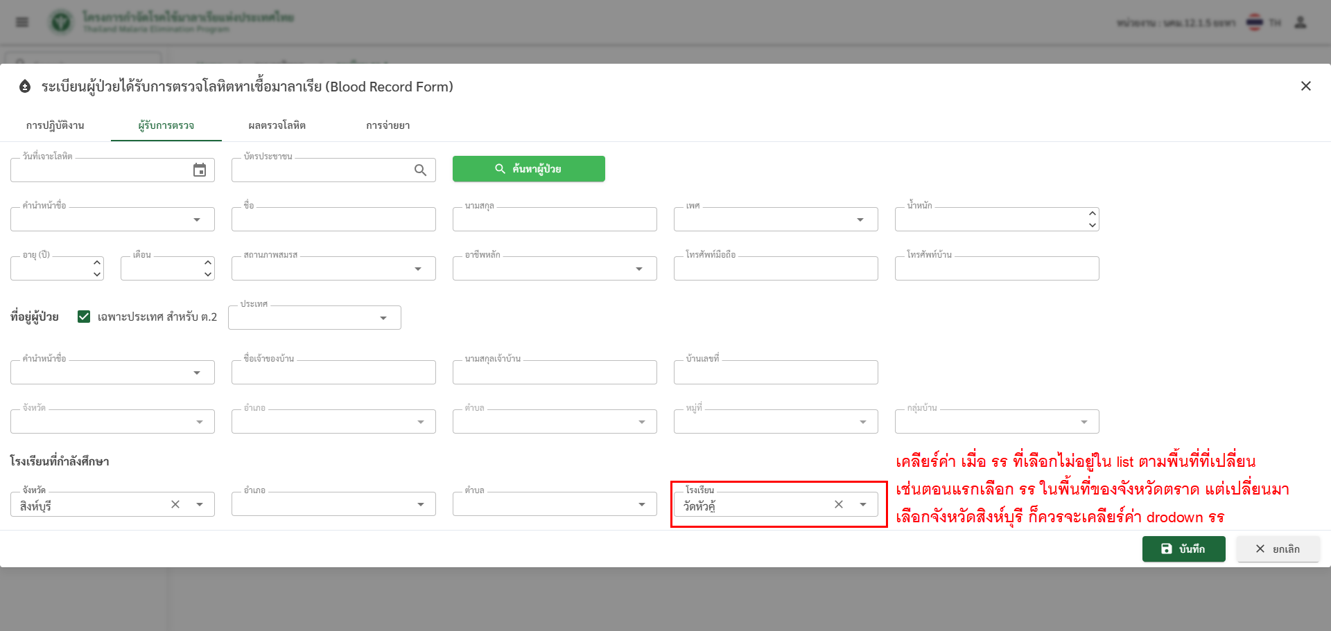 [รว/ระเบียน รว.1] บันทึกข้อมูลรว.1 เต็มรูปแบบ > clear ค่าใน dropdown เมื่อ event changed