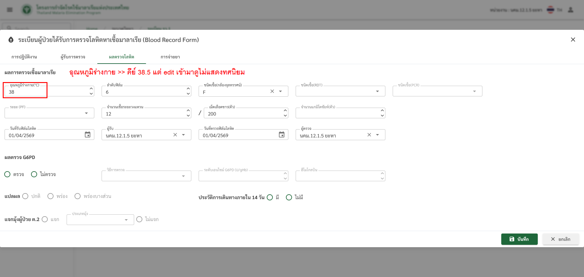 closed[รว/ระเบียน รว.1] บันทึกข้อมูลรว.1 เต็มรูปแบบ > เข้าหน้า edit : อุณหภูมิร่างกายไม่แสดงทศนิยม