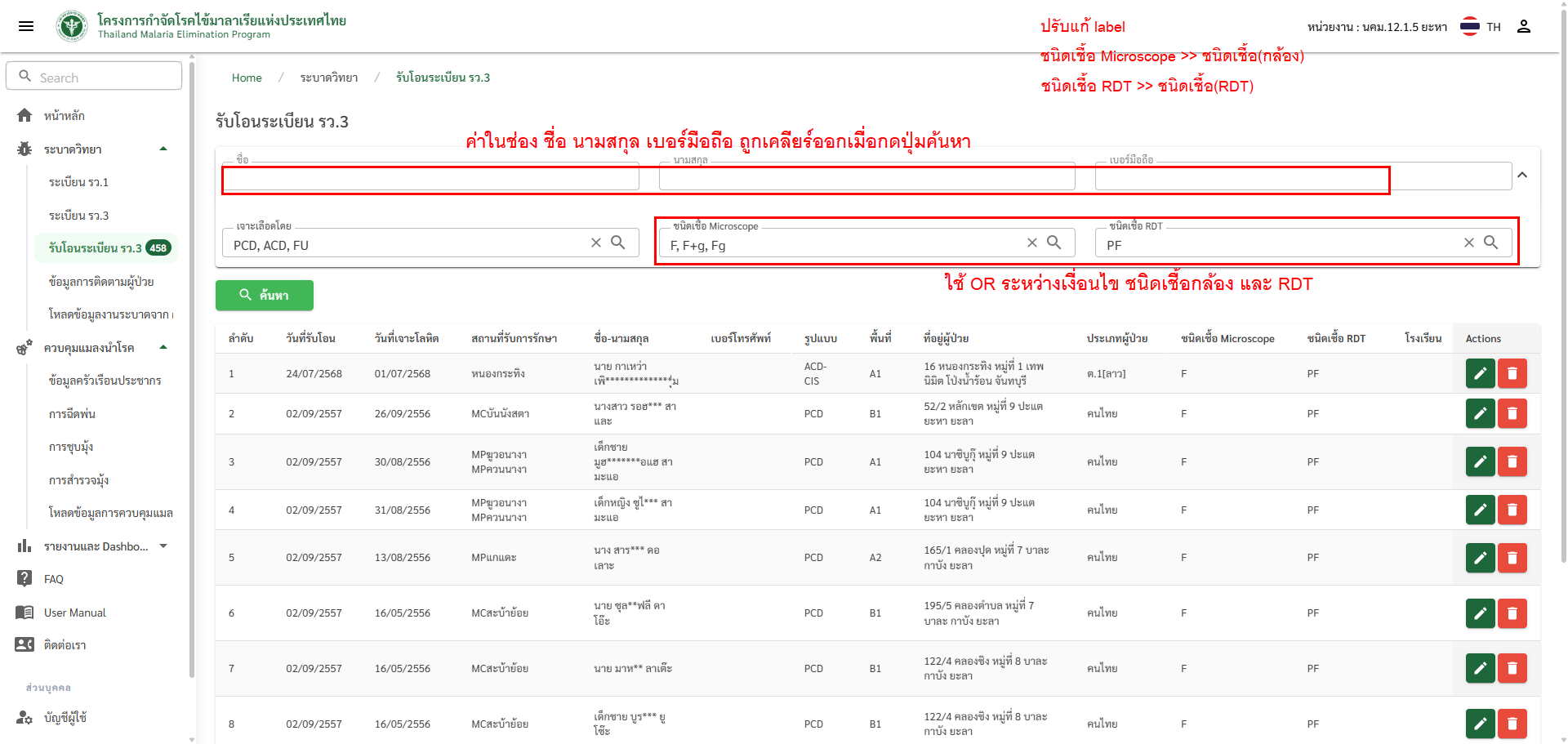 closed[รว/รับโอนระเบียน รว.3] หน้ารายการ > ปรับเงื่อนไขค้นหาชนิดเชื้อกล้องและRDT เป็น OR และ แก้ label